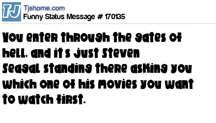 X says You enter through the gates of hell, and it’s just Steven Seagal standing there asking you which one of his movies you want to watch first.
