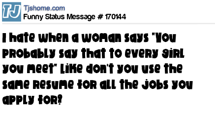 - # 146372 I hate when girls say, "you probably say that to every girl." don't you use the same resume when applying to different jobs?