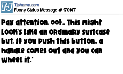 X says Pay attention, 007,,, This might look's like an ordinary suitcase but, if you push this button,, a handle comes out and you can wheel it."