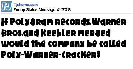 X If Polygram records,Warner Bros,and Keebler merged would the company be called Poly-Warner-Cracker?