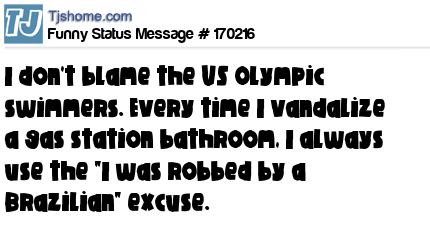X says I don't blame the US Olympic swimmers. Every time I vandalize a gas station bathroom, I always use the "I was robbed by a Brazilian" excuse.