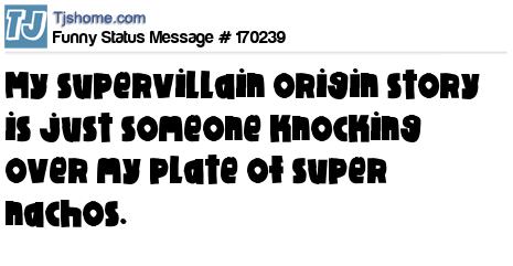 X says My supervillain origin story is just someone knocking over my plate of super nachos.