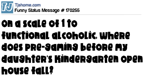 X says On a scale of 1 to functional alcoholic, where does pre-gaming before my daughter's kindergarten open house fall?