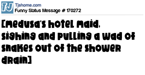 X says [medusa's hotel maid, sighing and pulling a wad of snakes out of the shower drain]
