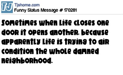 X says Sometimes when life closes one door it opens another, because apparently life is trying to air condition the whole damned neighborhood.