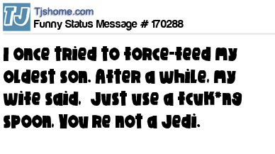 X says I once tried to force-feed my oldest son. After a while, my wife said, “Just use a fcuk*ng spoon, You’re not a Jedi.”