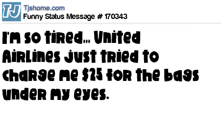 X says I'm so tired,,, United Airlines just tried to charge me $25 for the bags under my eyes.