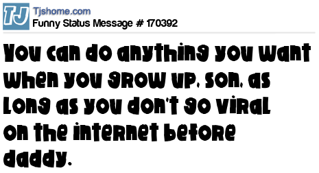 X says You can do anything you want when you grow up, son, as long as you don't go viral on the internet before daddy.