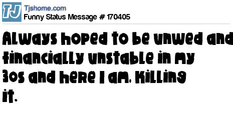 X says Always hoped to be unwed and financially unstable in my 30s and here I am, killing it.