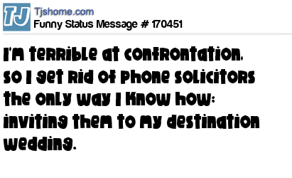 X says I'm terrible at confrontation, so I get rid of phone solicitors the only way I know how: inviting them to my destination wedding.