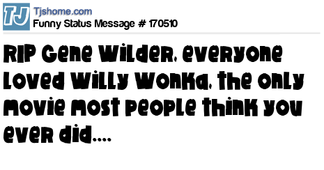 X says RIP Gene Wilder, everyone loved Willy Wonka, the only movie most people think you ever did....