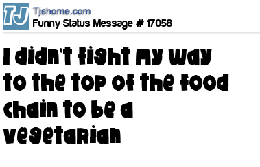 - # 99217 I didn't fight my way to the top of the food chain to be a vegetarian.