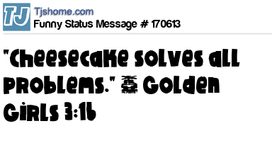 X says "Cheesecake solves all problems." ~ Golden Girls 3:16