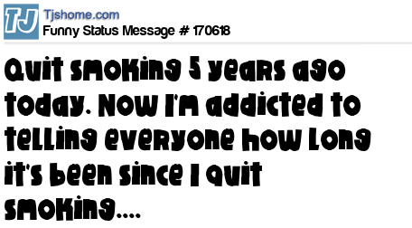 X says Quit smoking 5 years ago today. Now I'm addicted to telling everyone how long it's been since I quit smoking....