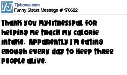 X is Thank you myfitnesspal for helping me track my calorie intake. Apparently I'm eating enough every day to keep three people alive.
