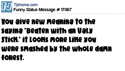 X You give new meaning to the saying "Beaten with an Ugly Stick," it looks more like you were smashed by the whole damn forest.