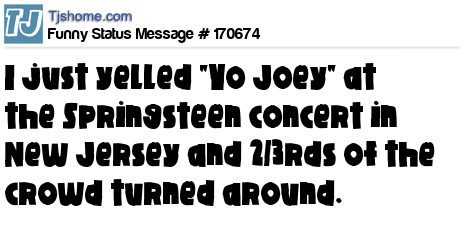 X says I just yelled "Yo Joey" at the Springsteen concert in New Jersey and 2/3rds of the crowd turned around.