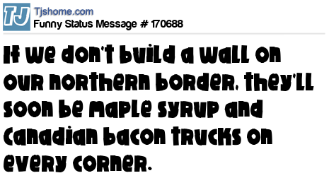 X says If we don't build a wall on our northern border, they'll soon be maple syrup and Canadian bacon trucks on every corner.