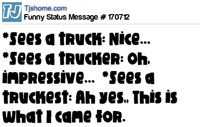 X says *Sees a truck: Nice... *Sees a trucker: Oh, impressive... *Sees a truckest: Ah yes,, This is what I came for.