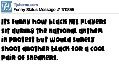 X says Its funny how black NFL players sit during the national anthem in protest but would surely shoot another black for a cool pair of sneakers.