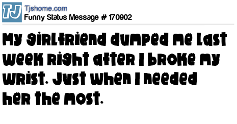 - # 54775 My neighbor is having such a hard time, he was divorced 2 months ago and then broke his wrist this week- I told him look at the bright side, now you can change your relationship from single to its complicated