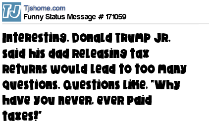 X says Interesting. Donald Trump Jr. said his dad releasing tax returns would lead to too many questions. Questions like, "Why have you never, ever paid taxes?"