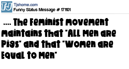 X says .... The Feminist movement maintains that "All Men are Pigs" and that "Women are Equal to Men"