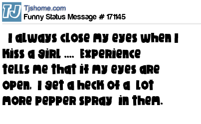 - # 164438 When I go in to kiss a girl, I always close my eyes. Ive just learned from experience, if my eyes are open, more pepper spray gets in them.
