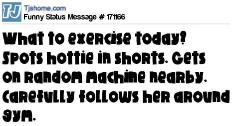 X says What to exercise today? Spots hottie in shorts. Gets on random machine nearby. Carefully follows her around gym.