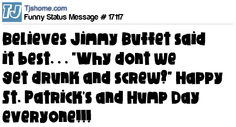 X believes Jimmy Buffet said it best. . . "Why dont we get drunk and screw?" Happy St. Patrick's and Hump Day everyone!!!