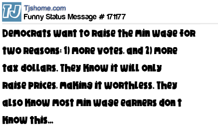 X Democrats want to raise the min wage for two reasons: 1) more votes, and 2) more tax dollars. They know it will only raise prices, making it worthless. They also know most min wage earners don’t know this…