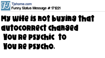 X says My wife is not buying that autocorrect changed “You’re psychic” to “You’re psycho.”