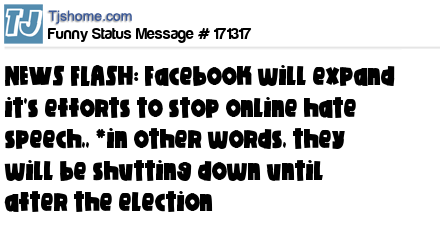X says NEWS FLASH: Facebook will expand it's efforts to stop online hate speech,, *in other words, they will be shutting down until after the election