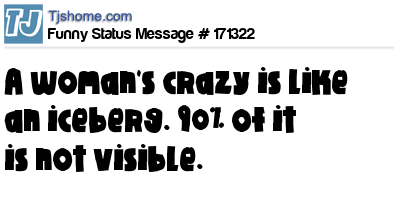 X A woman's crazy is like an iceberg. 90% of it is not visible.
