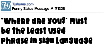 - # 152359 Welcome to Sign Language 101,, Can anyone tell me what this red sign is?.. Anyone?.. Anyone??,, It's a stop sign... How about this yellow one?... No?... Hello?,, What, are you guys deaf?