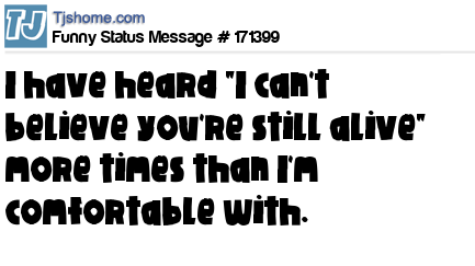 X says I have heard "I can't believe you're still alive" more times than I'm comfortable with.