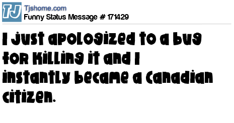 X says I just apologized to a bug for killing it and I instantly became a Canadian citizen.