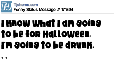 - # 115004 I'm going as drunk homeless girl for Halloween, because no costume needed and I can pass out on the neighbors lawn with no questions asked.
