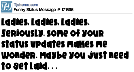 X says Ladies, ladies, ladies. Seriously, some of your status updates makes me wonder. Maybe you just need to get laid. . .