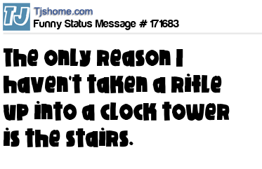 X says The only reason I haven't taken a rifle up into a clock tower is the stairs.