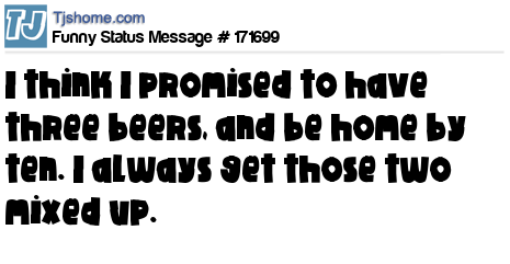 X I think I promised to have three beers, and be home by ten. I always get those two mixed up.