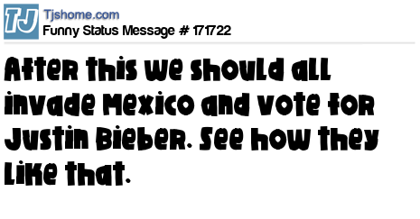 X says After this we should all invade Mexico and vote for Justin Bieber. See how they like that.