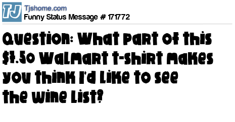 - # 172134 Which part of this $5.99 Walmart t-shirt makes you wonder if I would like to see the wine list?