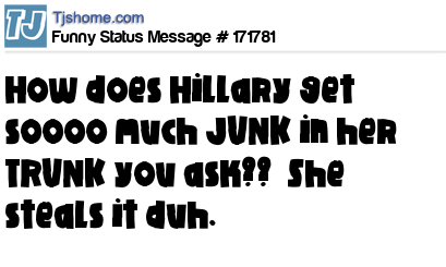 X says How does Hillary get soooo much JUNK in her TRUNK you ask??  She steals it duh.