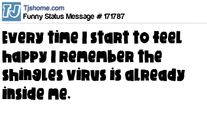 X says Every time I start to feel happy I remember the shingles virus is already inside me.
