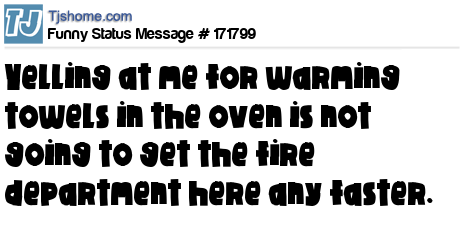 X says Yelling at me for warming towels in the oven is not going to get the fire department here any faster.