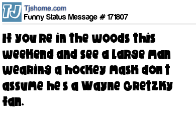 X says If you’re in the woods this weekend and see a large man wearing a hockey mask don’t assume he’s a Wayne Gretzky fan.