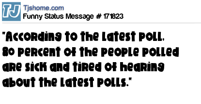 X says "According to the latest poll, 80 percent of the people polled are sick and tired of hearing about the latest polls."