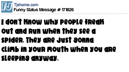 X says I don't know why people freak out and run when they see a spider. They are just gonna climb in your mouth when you are sleeping anyway.