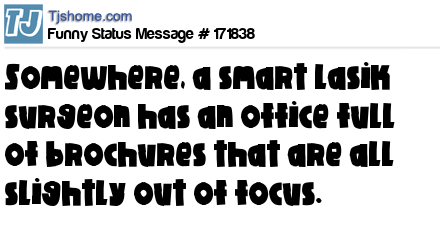 - # 37411 Somewhere, a smart Lasik surgeon has an office full of brochures that are all slightly out of focus."